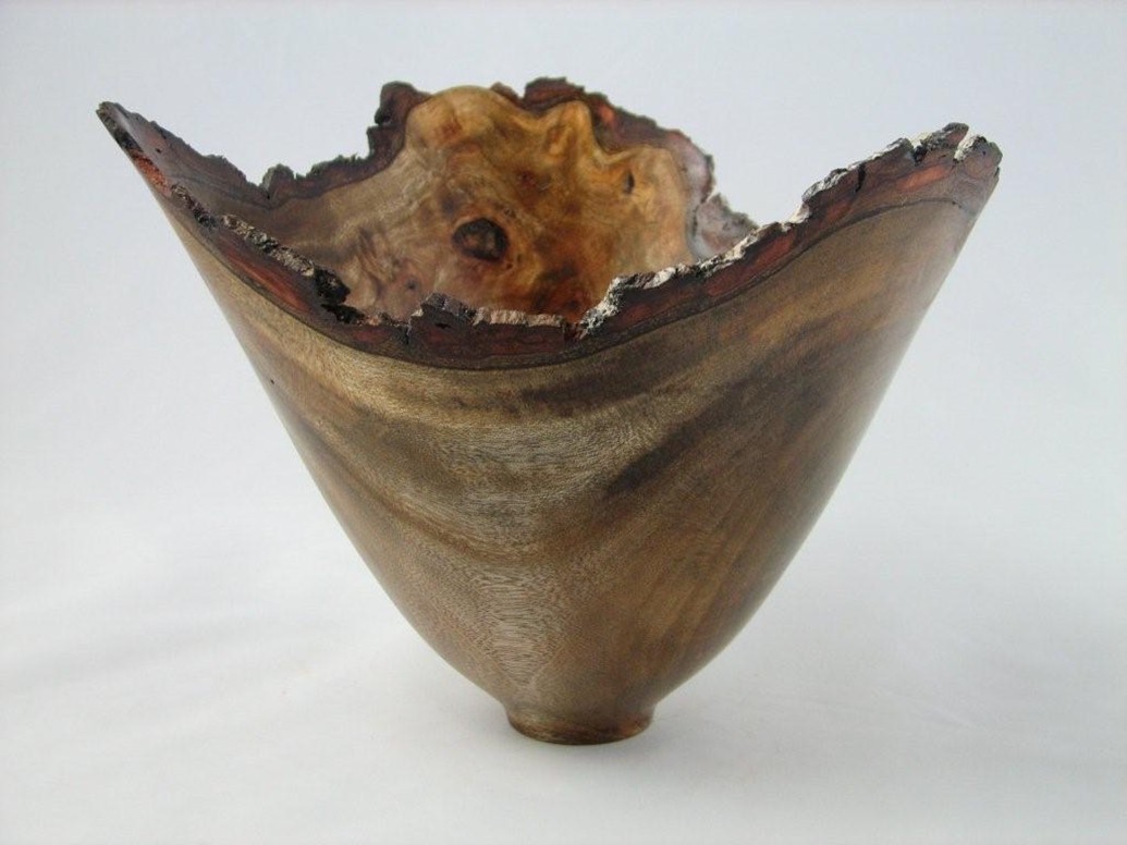 Shapes and form for natural edge bowls will be the focus of this demo. Preservation of bark and alternatives when there is no bark will be discussed. Blank selection and various chucking methods will be covered as we create an attractive looking natural edge bowl with an ogee curve. Skill level is beginner to intermediate.