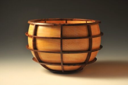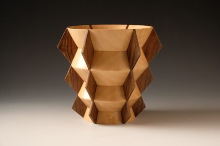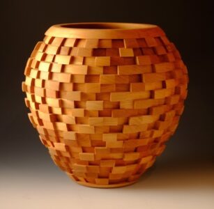 The biggest challenge in cutting a turned vase into pieces is getting the cut perfectly in the center of the vase. John will show you different ways to cut a turned vase apart accurately and safely. Getting the pieces back together can sometimes be a bigger challenge. In this demo John will show how to take a turned and finished vase, cut it apart, add protruding elements and reassemble the whole thing so the grain and walls remain aligned. He will also show how to create and add the elements that protrude beyond the walls of the piece. There are infinite design possibilities with this project, and the techniques shown here have helped many turners solve some of their own design problems. The idea of cutting apart a turned and finished piece is somewhat unique and, hopefully these concepts will help you develop your own turning voice.