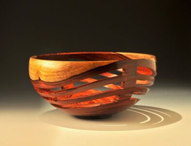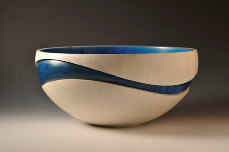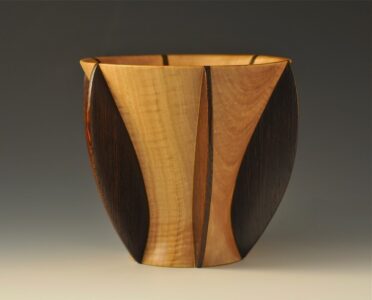 Having always lived near the Pacific Ocean, John was inspired to bring the motion and rhythm of the waves to a round object. The exploration of that concept led to the “wavy” design which is still the core signature of his work today. The genesis of John’s work is his ability to turn a vessel, cut it apart, add, subtract or modify the elements, and then put it all back together again with the grain and wall alignment correct.